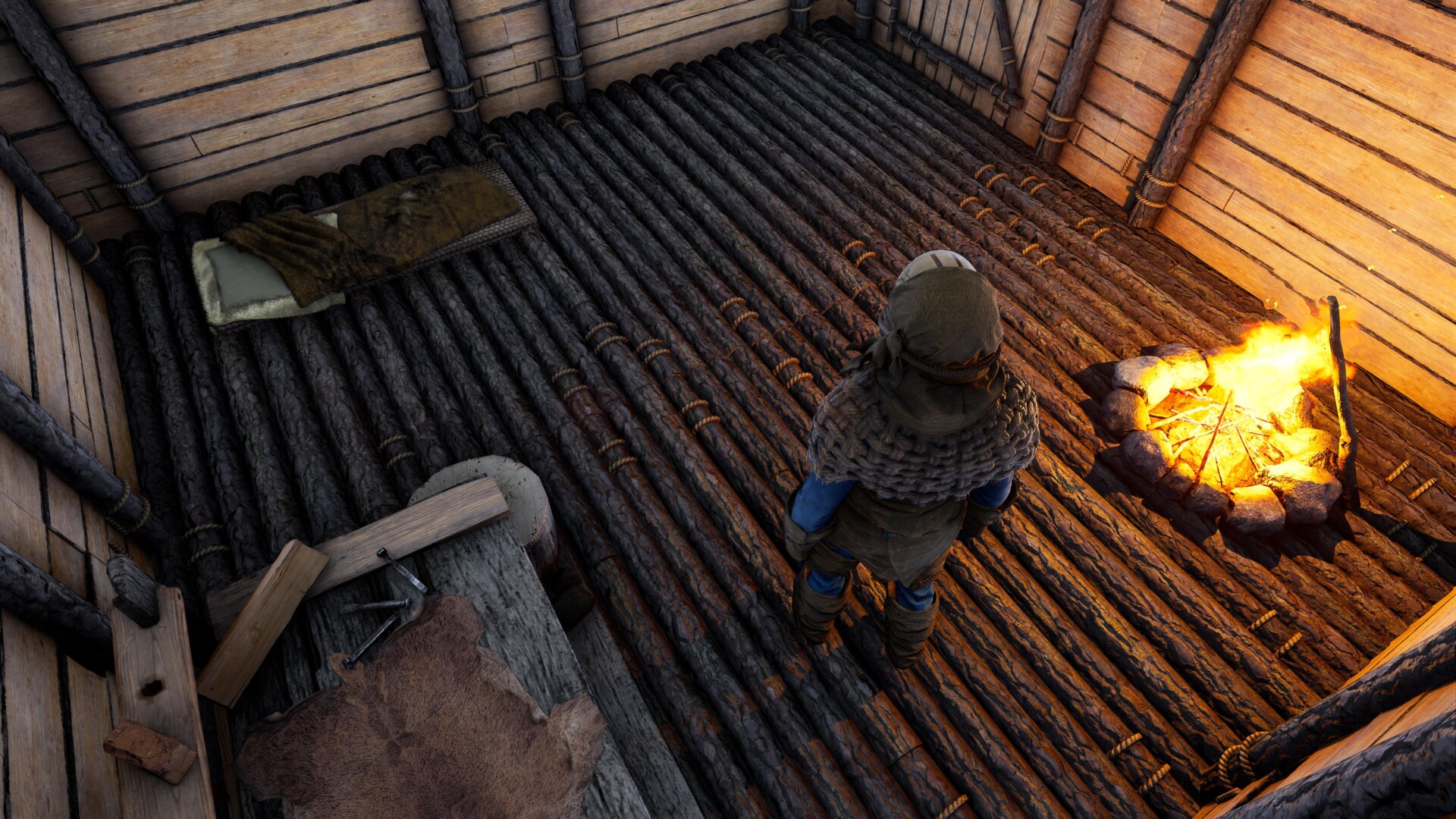 If wooden beds and bedrolls are surrounded by walls, the game will think that they’re in a shelter. This allows you to interact with a bed, turning it into a makeshift spawn point in case you die. If you need to sleep, however, then there needs to be a nearby campfire. Try not to place campfires near wooden structures or they’ll burn down. It’s also why we want to avoid the thatched structures in the crafting tech tree since they’re more likely to catch fire. Alternatively, you can just place the campfire outside the shelter.