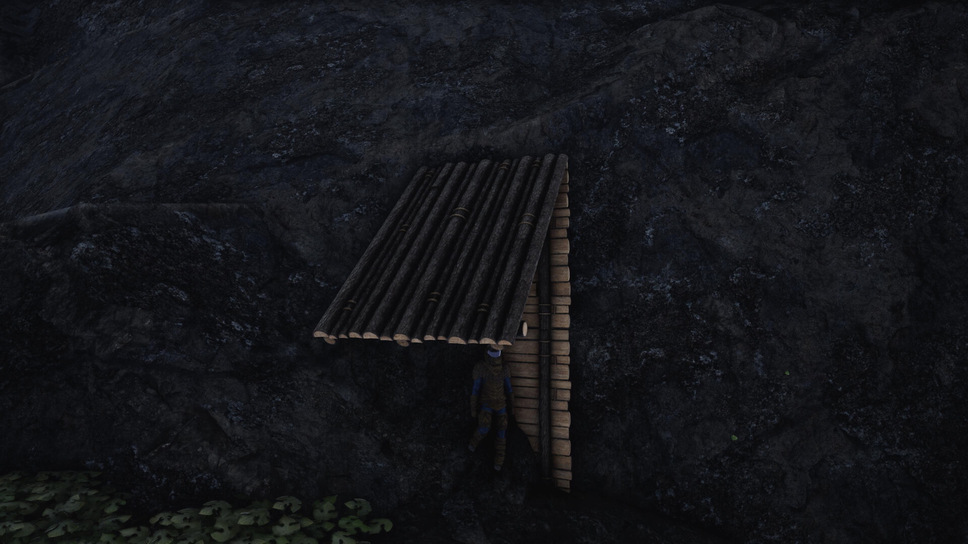 - If you can’t find a cave and you don’t want to use up a lot of resources, you can just have one wooden roof. This can be built adjacent to a mountain, though there are times when it’d crumble due to texture overlap. If this occurs, you can just plop down a couple of wooden walls, then select the wooden roof and rotate it. If placed at an angle, you can stay under the roof and avoid suffering from exposure to the harsh elements (seen in the image below).
