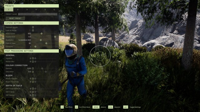 Photo Mode allows you to tweak several options, such as field of view, exposure, bloom, and various presets. You can also hold right-click to move the camera around and get the perfect angle. When you’re happy with the view, press “E” to take a screenshot. A PNG file will get saved in “C:\Users\<Username>\AppData\Local\Icarus\Saved\Screenshots\WindowsNoEditor.”