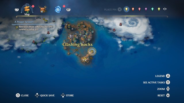 The starting section of Immortals Fenyx Rising‘s map is called Clashing Rocks. Nearly everything it contains can be completed within a couple of hours and you can make a beeline for the game’s earliest tier-three mount if you want. The mount is a silver pegasus named Laurion and is (to the best of my knowledge) one of four unique, tier three mounts that you can find roaming the Golden Isles. Simply go to the location marked in the picture directly below to find it.