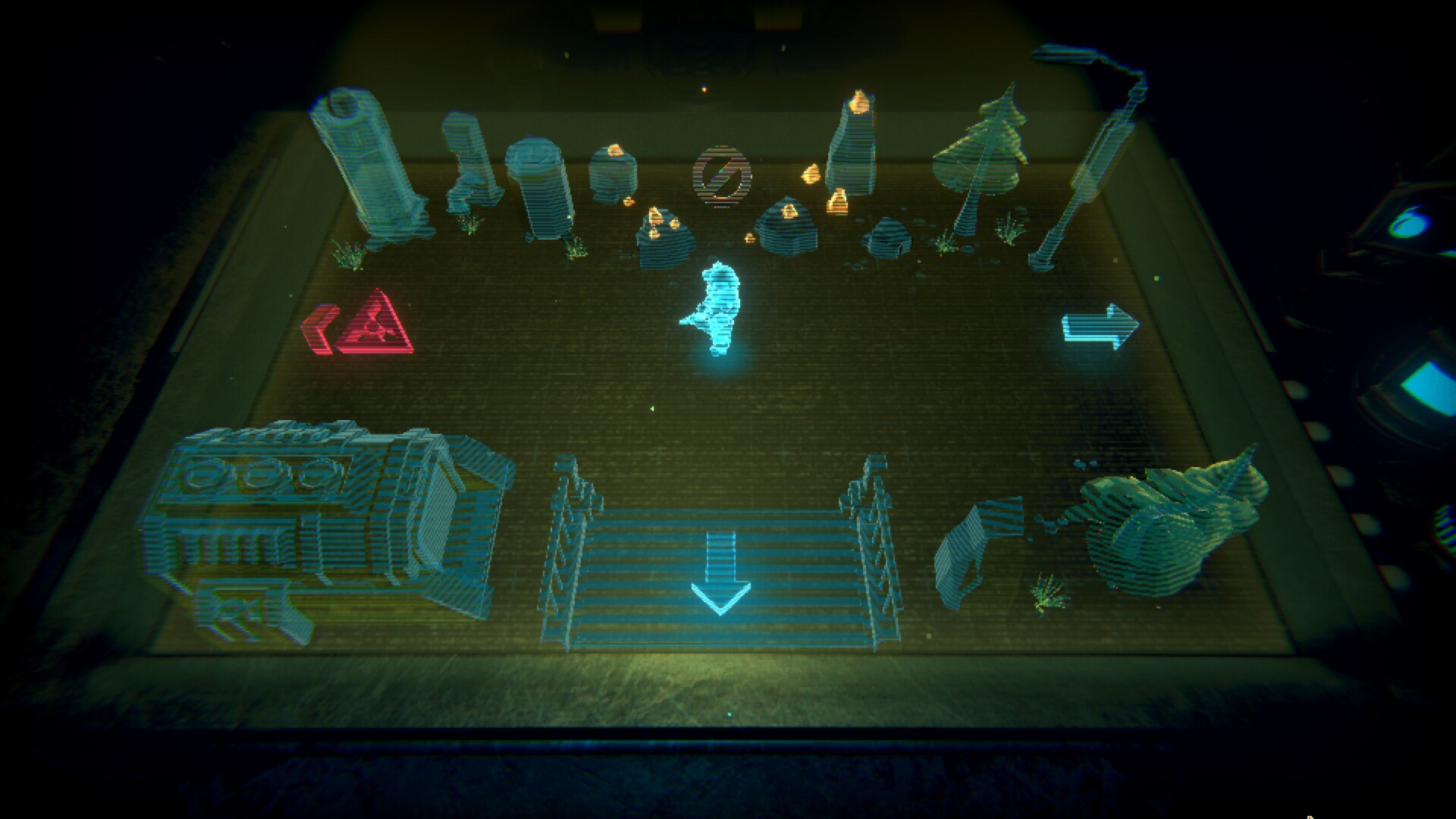 The layout of the Botopia in Act 3 of Inscryption is a bit like what you’ve seen in the previous chapter (at least in terms of zones and landmarks). The difference here is that you’re on an isometric plane where you can only move in four directions (up, down, left, and right). These are symbolized by arrows at the edge of the screen.