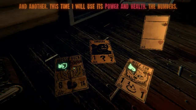 As a rule of thumb, each death you have in Inscryption leads to two things: you’ll restart your run from the first area, and you’ll get to design your own Deathcard (I’ll discuss this later). Now, since this is a rogue-lite, you’ll have a starter deck with low-tier cards. But, you’ll still retain some important ones, such as the Stoat, Stinkbug, and Stunted Wolf.