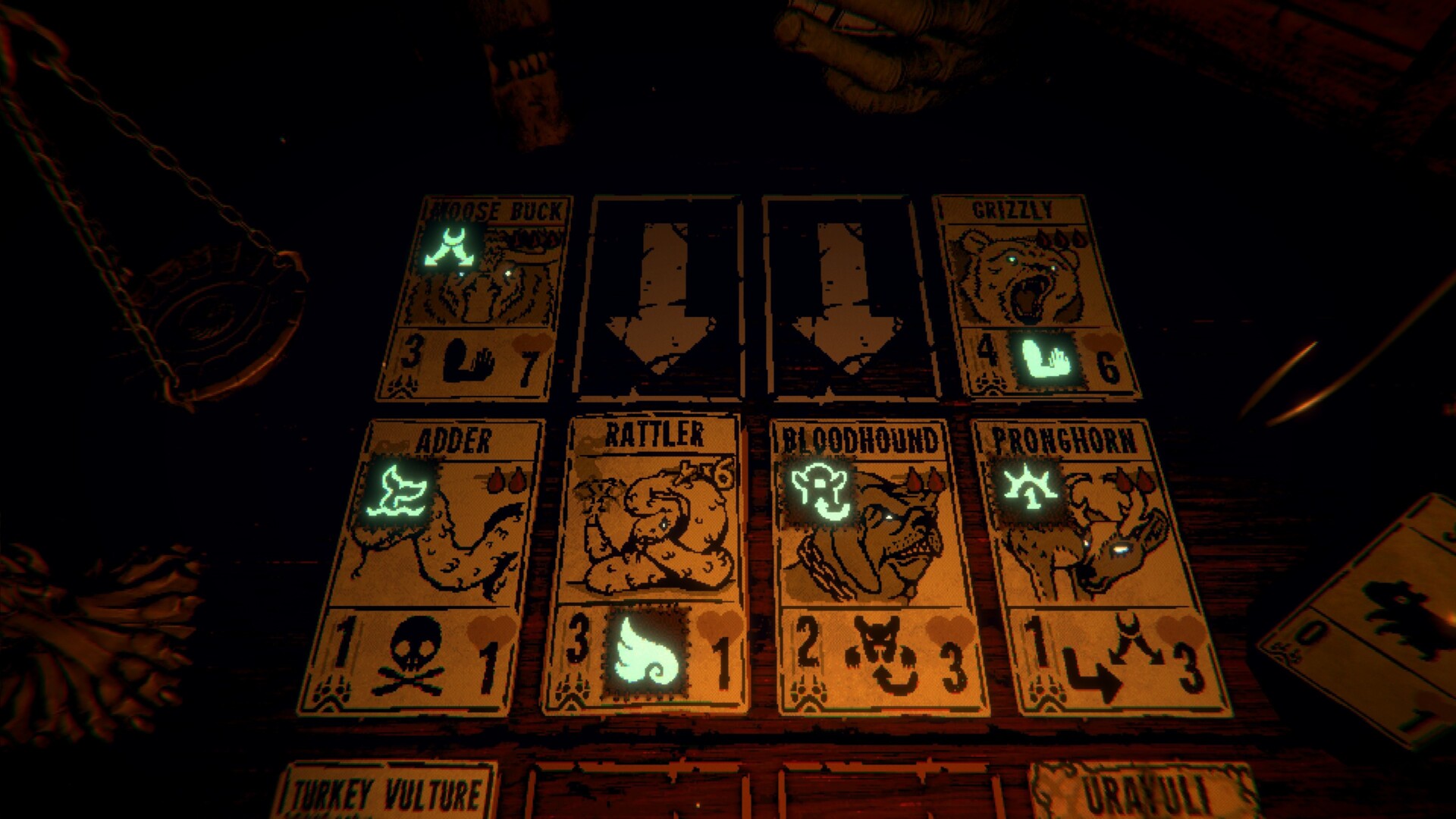 The Trader acts much like the vendor that you’ve encountered during your runs. That means you’ll exchange the pelt cards in your hand to select creatures (which can be placed down if you have the resources). However, any creature you didn’t choose will automatically be placed on the opposing side.