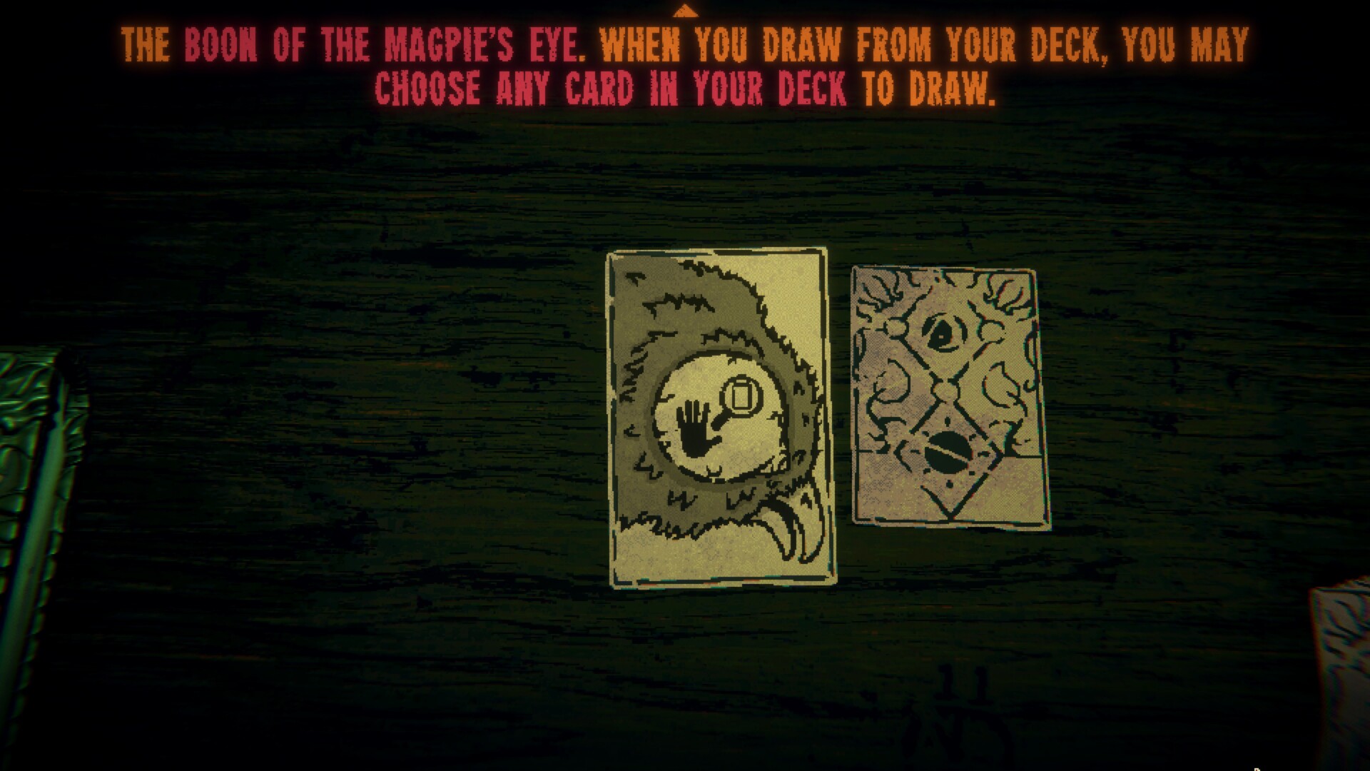 - Magpie’s Eye – You can choose any card when you draw from your deck. This is amazing, so make sure to get this if it’s available.
