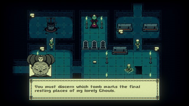 Anyway, once you have more cards, go inside the Grimora’s Crypt. You’ll notice that she’s walled off behind three tombstones. Our goal here is actually fairly simple. We need to collect information about the ones buried here so we can complete their epitaphs:
