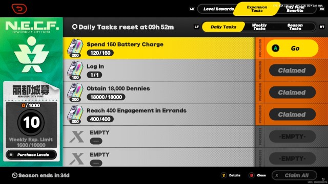 Nevermind the Eridu Welcome Gift, The New Eridu City Fund is a list of rewards you can earn by completing daily and weekly tasks. Many of these assignments are rudimentary, like logging in or spending Battery Charge. You can check these by scrolling over to Expansion Tasks (pictured above).