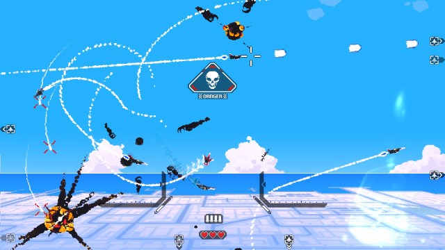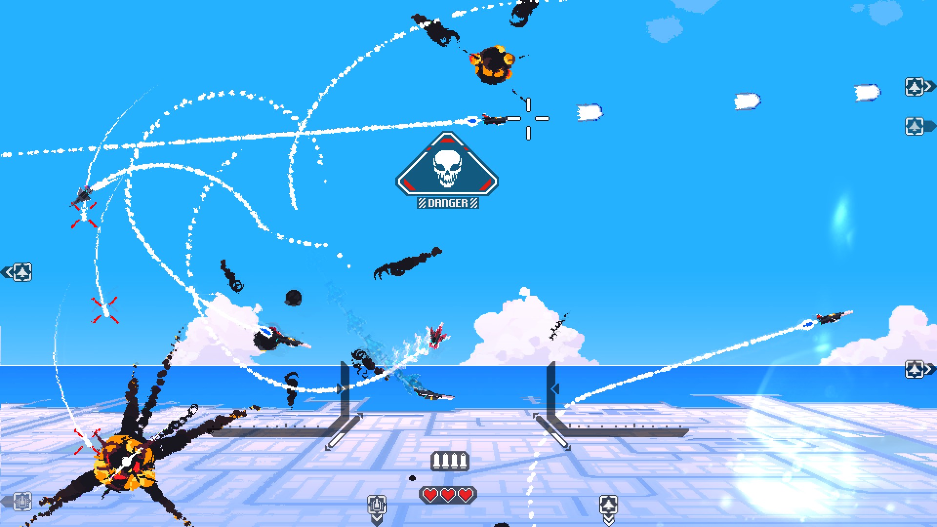 Combining tight maneuvering and the afterburner opens to the door to a host of tactics that you owe it to yourself to pull off at least once. Nothing beats the thrill finessing enemies into nosediving straight into the ocean. The ship’s primary fire is a classic machine gun that gets substantially harder to line up targets with as enemies quickly get smarter. New enemy types are faster, more agile, and know how to find their way into your blind spots.