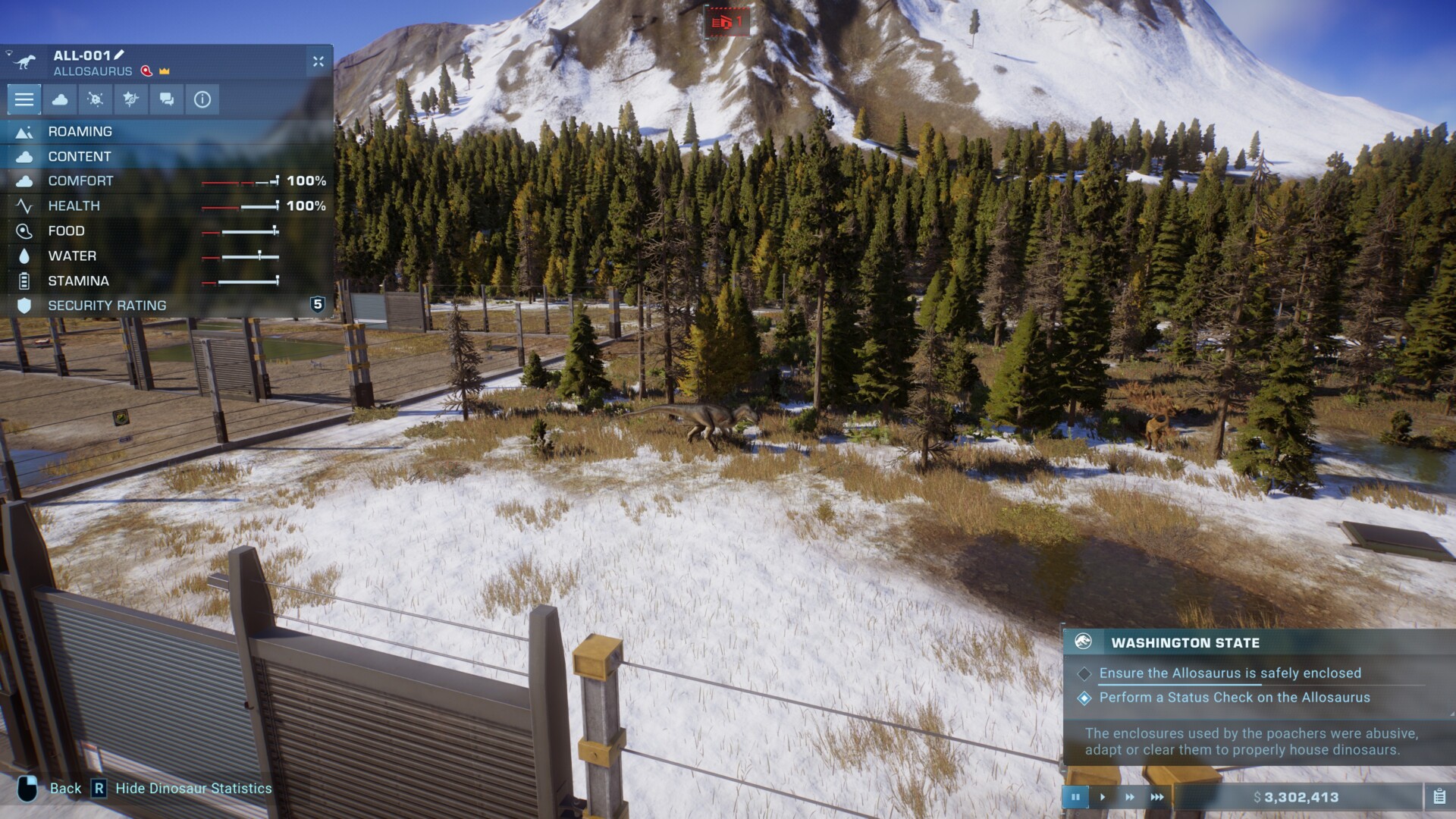 How to safely enclose the Allosaurus in the Washington campaign mission in Jurassic World Evolution 2