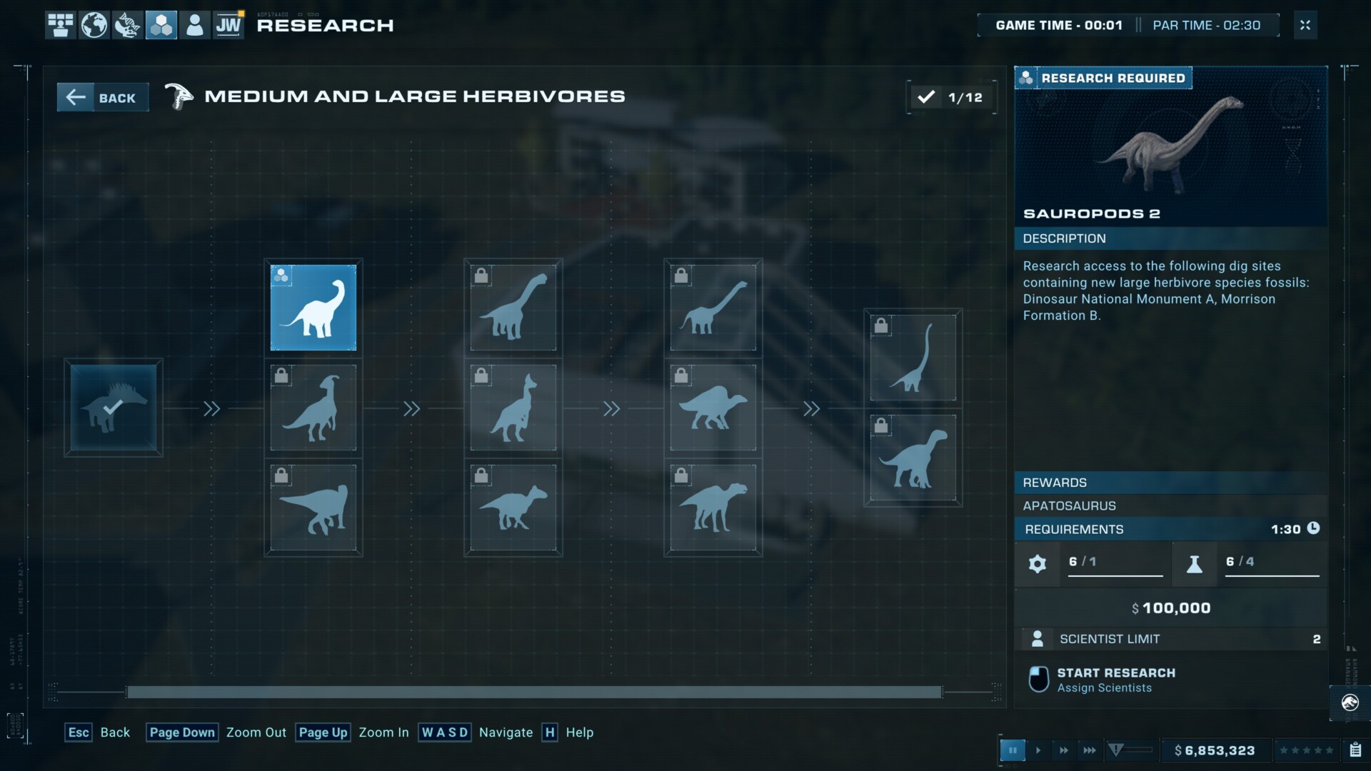 The easiest way to unlock most dinosaurs and buildings in Jurassic World Evolution 2 is by playing Challenge mode. Simply select the Canada map and pick the easy difficulty option. You’ll then see several tasks which you can complete at your own leisure. As for the process, we’re going to rely heavily on our scientists and research. Any buildings and dinosaurs that you’ve researched and subsequently built/released in Challenge mode will be unlocked once you play Sandbox mode. As such, our goal is to ensure that we can get as many as possible in a single run.