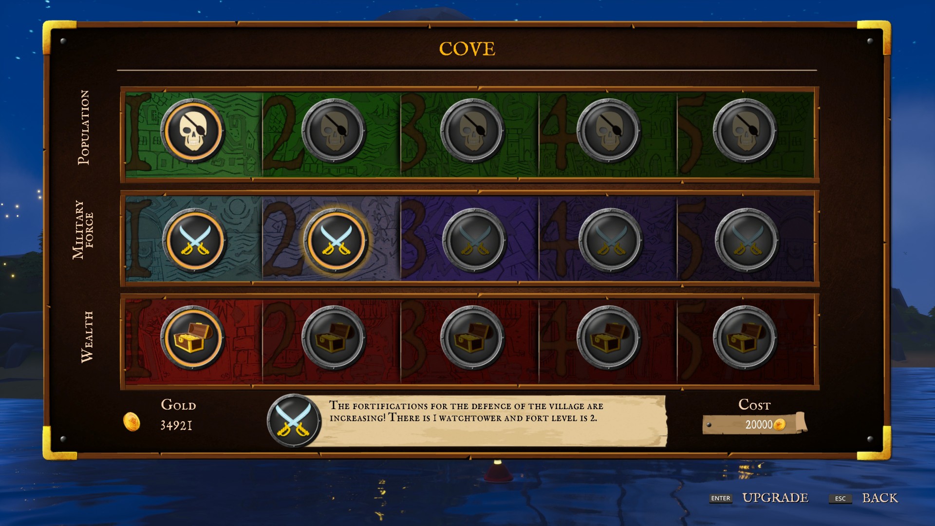 After securing three new settlements as part of King of Seas‘ main quest, you’ll be able to upgrade the facilities in Eagle’s Den and other Pirate-owned territories: