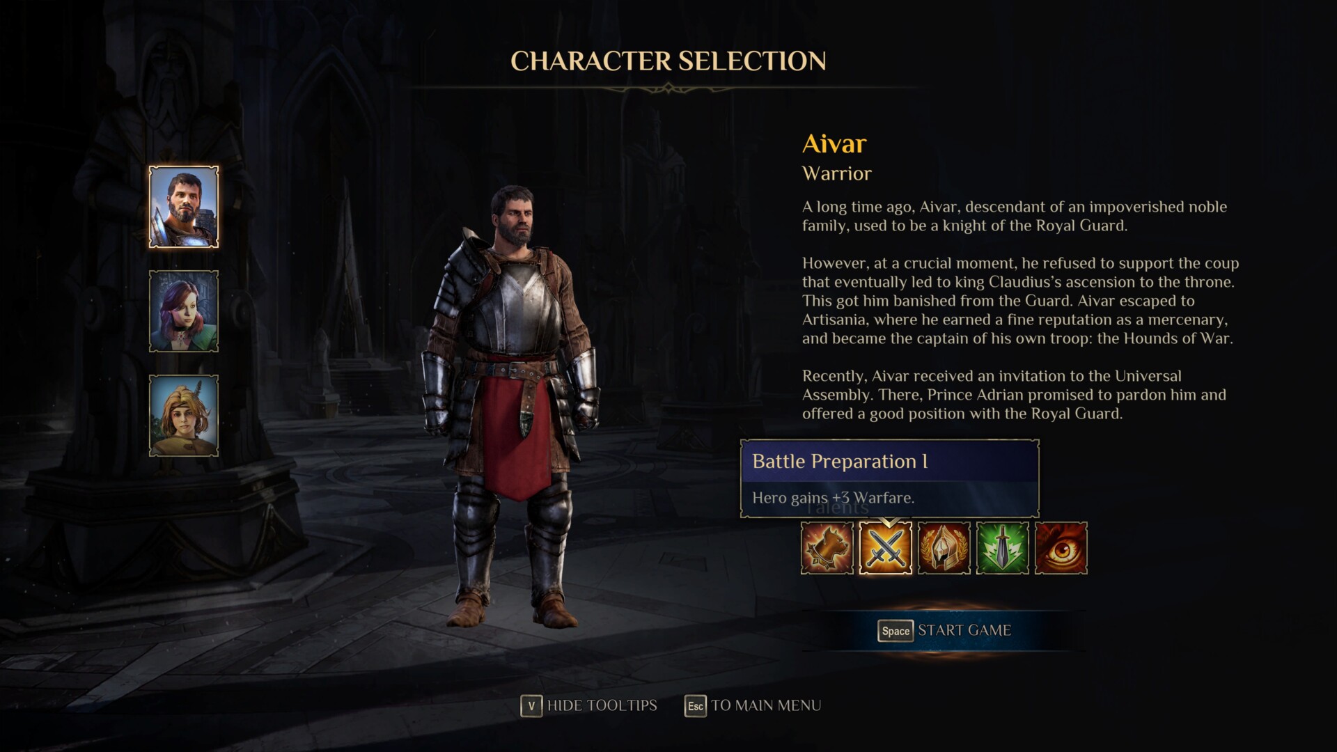 | Hero Name and Class | Aivar (Warrior) | Katharine (Mage) | Elisa (Paladin) |