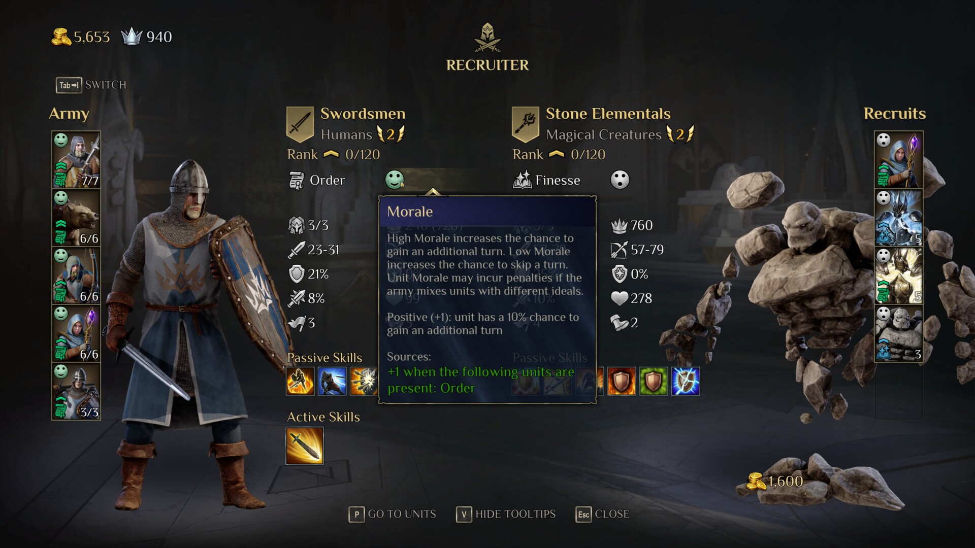 - Morale – By having an army comprised of units that follow the same ideals, you gain a morale boost which gives units a chance to gain an extra turn. Conversely, units that follow a different or diametrically opposed ideals lead to a morale penalty. Low morale increases the chance that units will skip a turn.