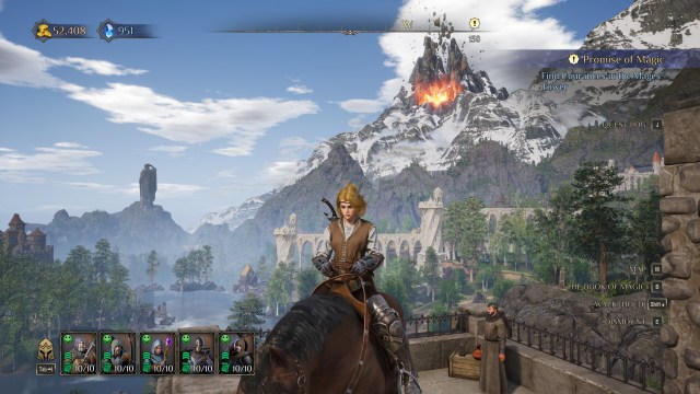 At the very least, you can count on the visualsĀ — at least from a distance. You’ll see the landmarks such as the capital and the Mage Tower from far away, and they’ll definitely make you marvel. The downside is that textures, even at the highest graphics settings, are a little rough. I did notice rendering issues when looking at textures close up. To cap it off, the UI has a lot of clutter (i.e., control tooltips and resources) that can’t be toggled off for a cleaner look.