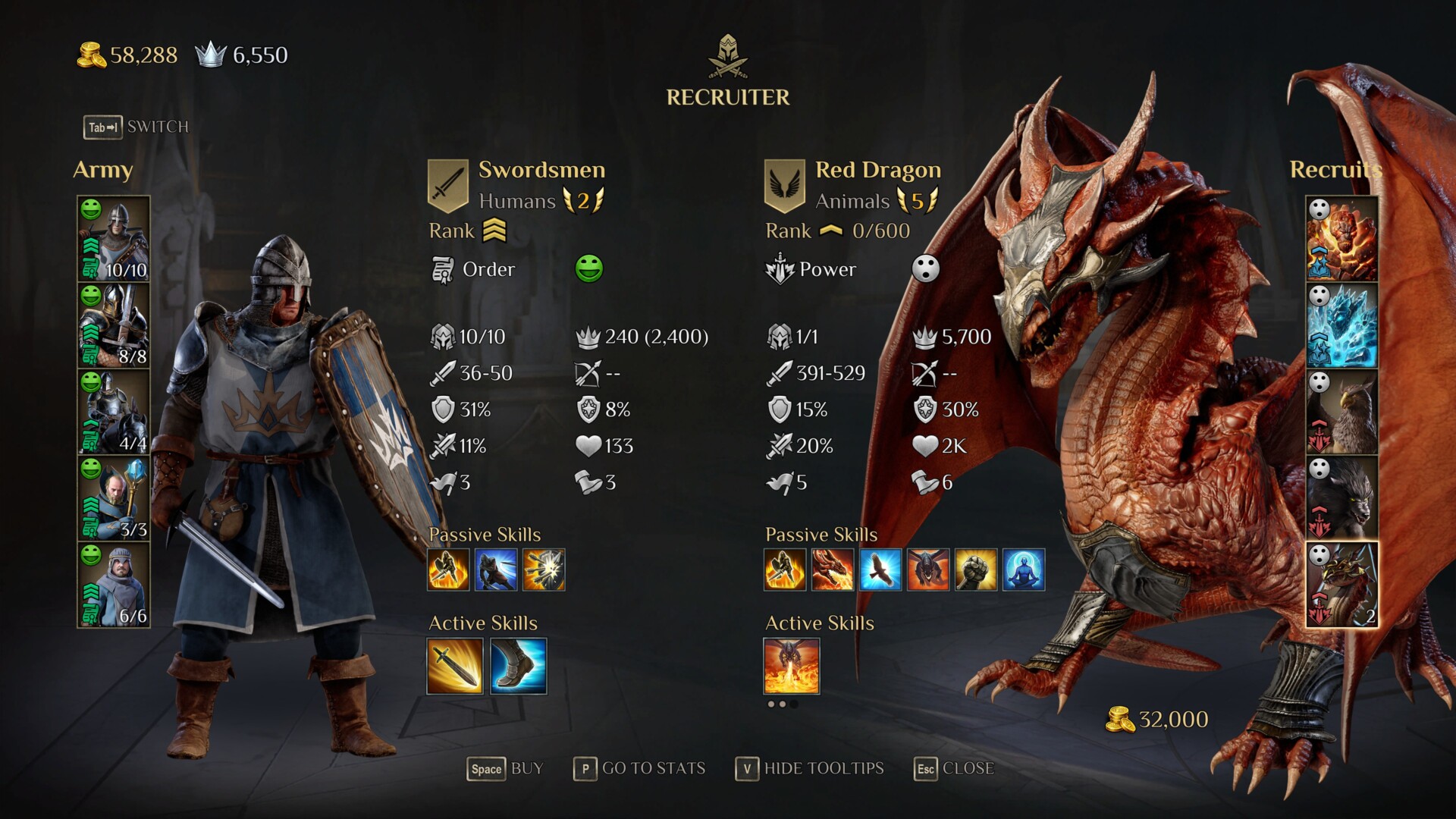 In King’s Bounty II, you’ll recruit units to your army and they, too, belong to a particular ideal/alignment. There are Order units such as knights, mages, and healers, as well as Anarchy units like mercenaries, assassins, and the undead. Finesse units, meanwhile, are elementals and golems, and most Power-type units consist of dwarves and animals. Although you can mix and match freely according to your needs, units that follow the same alignment confer morale boosts.