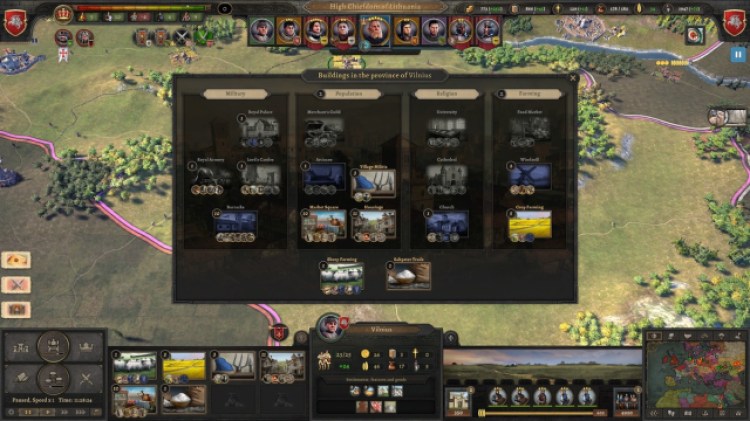 Look, there’s a lot mechanical neatness that goes into making the game less likely to devolve into a simple exercise of rowing doom stacks. But there is also some jank. For one, whether you start as Lithuania, the two-province minor in 12th century or Lithuania the 14th century empire, you provinces are bereft of buildings while your king is the only knight to start. This remains true for every country and time, though there are changes in national unit availability. The 14th-century Lithuanians can eventually recruit Boyar Cavalry, which is the special version of heavy cavalry 11th-century ancestors couldn’t get.
