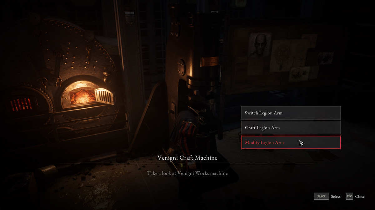 Now in order to upgrade the Legion Arms you’ll need to progress a little further into Lies of P. Specifically, you’ll need to have completed the third area in the game, Venigni Works. Once this is done, Venigni himself will join you at Hotel Krat and set up his workshop just opposite Eugénie. Now you can use the Venigni Craft Machine to switch, craft, and upgrade Legion Arms.