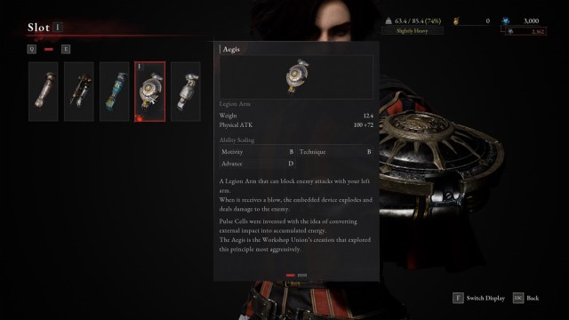 My personal recommendation for a good Legion Arm in Lies of P is the Aegis. This lets you bring up a shield that explodes and deals damage to an enemy that makes contact with it. For defensive purposes, it’s one of the best tools in the game. And it’ll make some fights against tough enemies and bosses much easier.