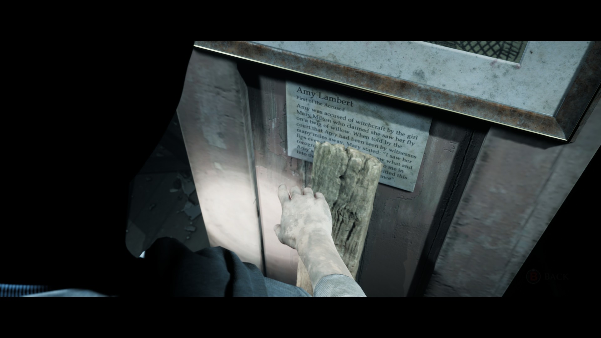 When you spot Amy Lambert’s portrait, pan the camera downwards and move the wooden block to find another secret.