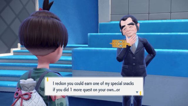 When you talk to the character, you’ll learn his name is Snacksworth. He awards you Key Items as you clear BBQ quests. For every 10 completed quests, you receive a new “treat.” Each treat has the name of a corresponding legendary Pokémon. You need to keep clearing quests until you receive the Moltres Treat. In my case, I received it after clearing a whopping 90 quests. To accomplish that feat, I spent a few hours snapping photos, auto-battling, and occasionally catching monsters in the Terarium. If you don’t mind grinding, it shouldn’t take all that long, especially if you’ve already cleared some quests up to this point.