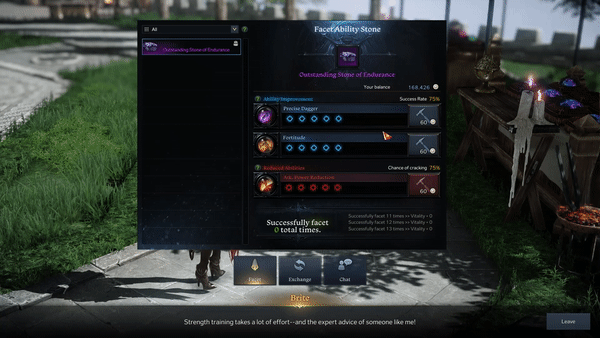 Ability Stones are an item that drops from numerous monsters, bosses, and endgame content. You need to take these to an NPC to facet them before they can be used. So, when an Ability Stone drops that has the Engravings you want on it, you can attempt to facet it. This is a random system that can be partially controlled. You can see how the Ability Stone faceting process works in the video below. Notice how the chance of the next node succeeding goes down when you gain a node, but goes up when you fail a node.