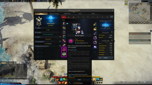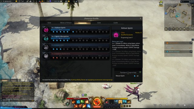 The image above shows the main window you need to look at to see how much benefit you are receiving from your Engravings. As you can see, each Engraving you have equipped has three tiers. Each tier gives you a more powerful version of the Engraving. For example, Robust Spirit, one of the Soulfist Engravings, causes you to go straight into your strongest power-up. At level one, the Engraving increases your damage by 10% while in this more powerful form. At level two, it increases your damage by 20%. And at level three, it increases your power-up damage by 30%.