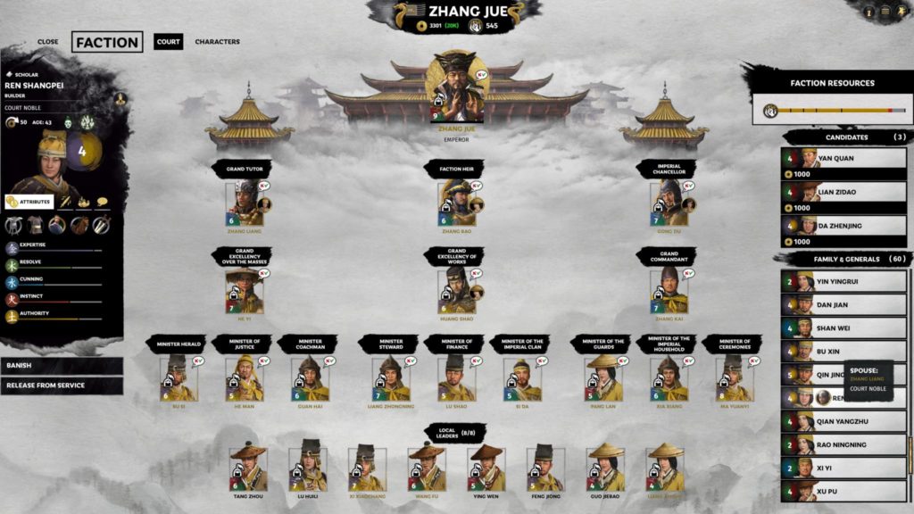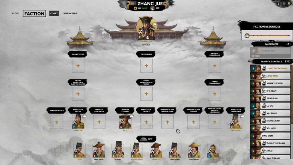 Needless to say, I decided to reload an earlier Mandate of Heaven save. I made sure that I reached Cao Cao’s capital before Zhang Bao did. I captured it and, lo and behold, my court transformed into one that’s similar to the Han Empire’s: