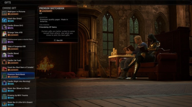 - Legendaries – Each legendary gift has one specific hero that loves them, so you should only present it to that person. You can, however, earn duplicates of these from the Gift Shop whenever it cycles its wares.
