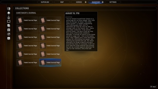 The Caretaker in Marvel’s Midnight Suns has a supporting role throughout the campaign. She’s there to give the Hunter advice as she does battle with Lilith’s minions, though she also has her own motivations based on what transpired in the past. You’ll learn more about her background by obtaining various notes as you progress. Here’s our Marvel’s Midnight Suns Caretaker’s Journal locations guide to help you find all the pages for the Black Grimoire reward.