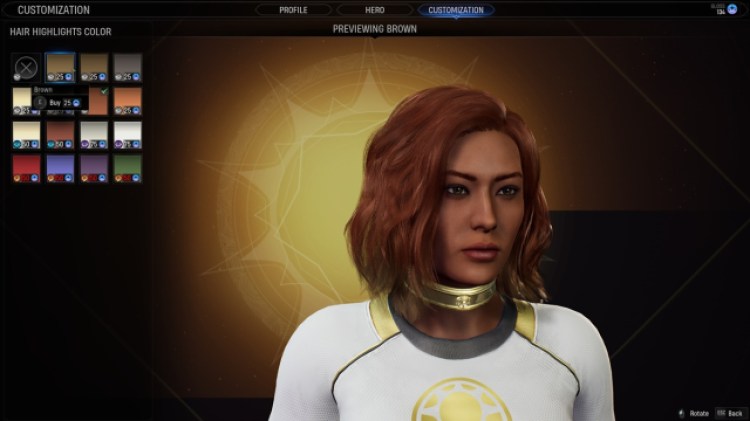Hero cosmetics and customization options in Marvel’s Midnight Suns can be accessed by pressing “1” (the default key). With the Hero screen open, go to the Customization tab to see another panel. There, you’ll find the following: