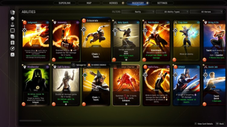 The fastest and most direct way to get Essence in Marvel’s Midnight Suns is simply by salvaging your cards (i.e., mouse over a card and hold the “R” key). The type of card you destroy will net you the same type of Essence (i.e., Attack, Skill, or Heroic).