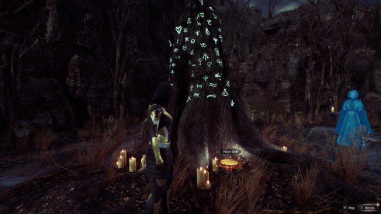 She’ll lead you to a sealed cavern known as a Blood Gate. Interact with it to start a challenge encounter. This is mostly just a tutorial of sorts where the Hunter and the dog, Charlie, battle a few weak mobs. When you’re done with this, you can explore the rest of the cave to find the Moon Seal. Place it on the altar and you’ll obtain the Open Word of Power.