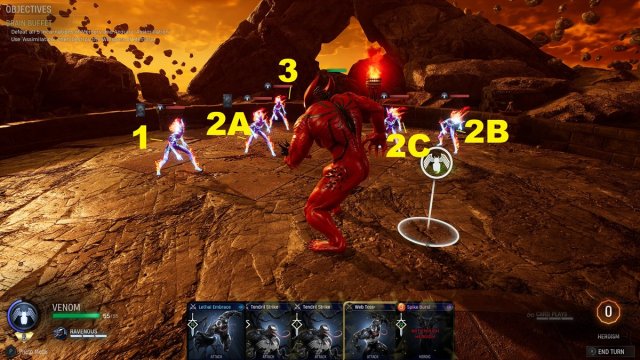 The goal in the Venom Brain Buffet Legendary Challenge in Marvel’s Midnight Suns is to take out the five Incarnations of Memory mobs using a limited set of abilities. As such, you’ll have to use specific cards to target certain enemies in order.
