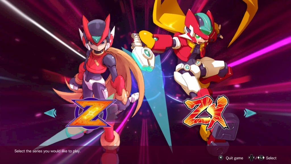 Upon starting Mega Man Zero/ZX Legacy Collection, you’re immediately given a choice between the Zero and ZX games. There are four games in the former and two in the latter. The Zero games were Game Boy Advance games, while the ZX entries were on the Nintendo DS. On account of that, there are a couple of differences between the way this collection handles both.