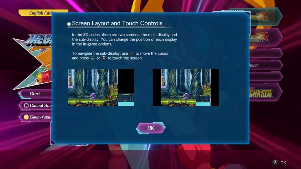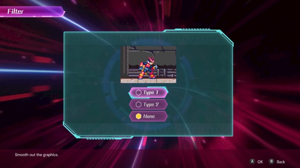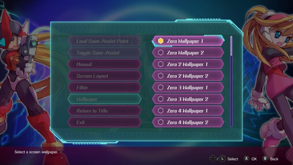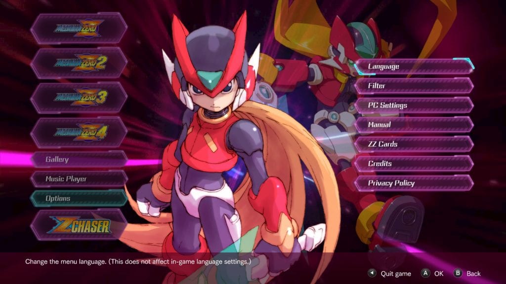 Once you actually start playing a game, you can access the Mega Man Zero/ZX Legacy Collection menu itself at any time. It’s a bit different and has a few more options.