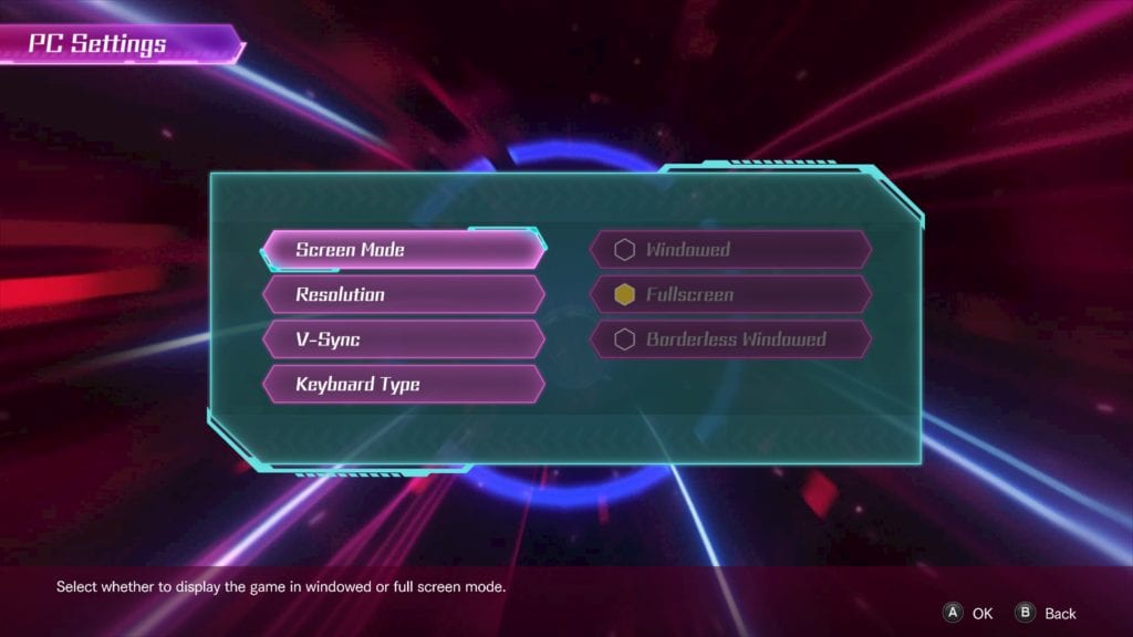 Then we just have the standard suite of screen options. You can choose your resolution, whether you want the game windowed, and if you’d like to enable V-Sync. Not much to say here.