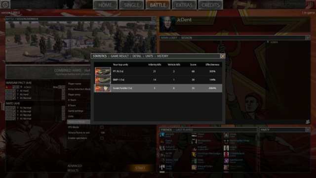To start the campaign you choose the difficulty, the length, resource level and whether Fog of War and Hardcore modes will be on. You also pick a side: US or USSR. Then you’re dropped into the army building screen. On the left, you see what units you can recruit – you can buy as many as your resources (that is, the single resource that exists in the game, fittingly named “resources”) allow and put them in your unit pool in the center. You then use those units to assign them to reinforcement waves in the window to the right.