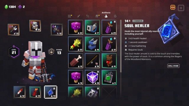 As for the soul-based artifacts, I love having Soul Healer around. Because of the lengthy cooldown for your potion, the Soul Healer can save your life whenever you’re in a pinch. It’s like having a second potion with you, and one that can be used over and over again as long as you’ve captured a number of souls.