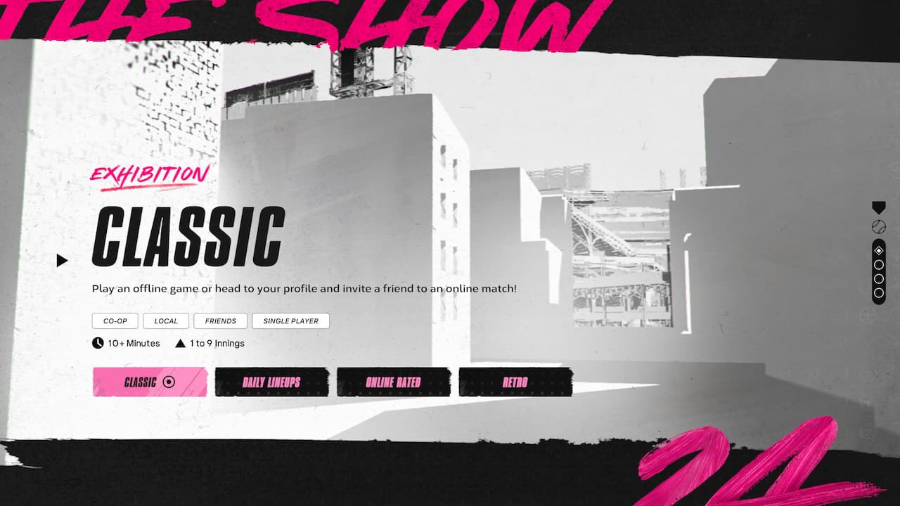 The color choices also didn’t help. The white of the screen in combination with the pink and greys quickly became an eyesore and left a bad first impression. I know San Diego Studio probably wanted to bring more dynamism with this design in total contrast to the overall blandness and boring nature of video game menus, but maybe take a note from EA FC or even the 2K sports games.