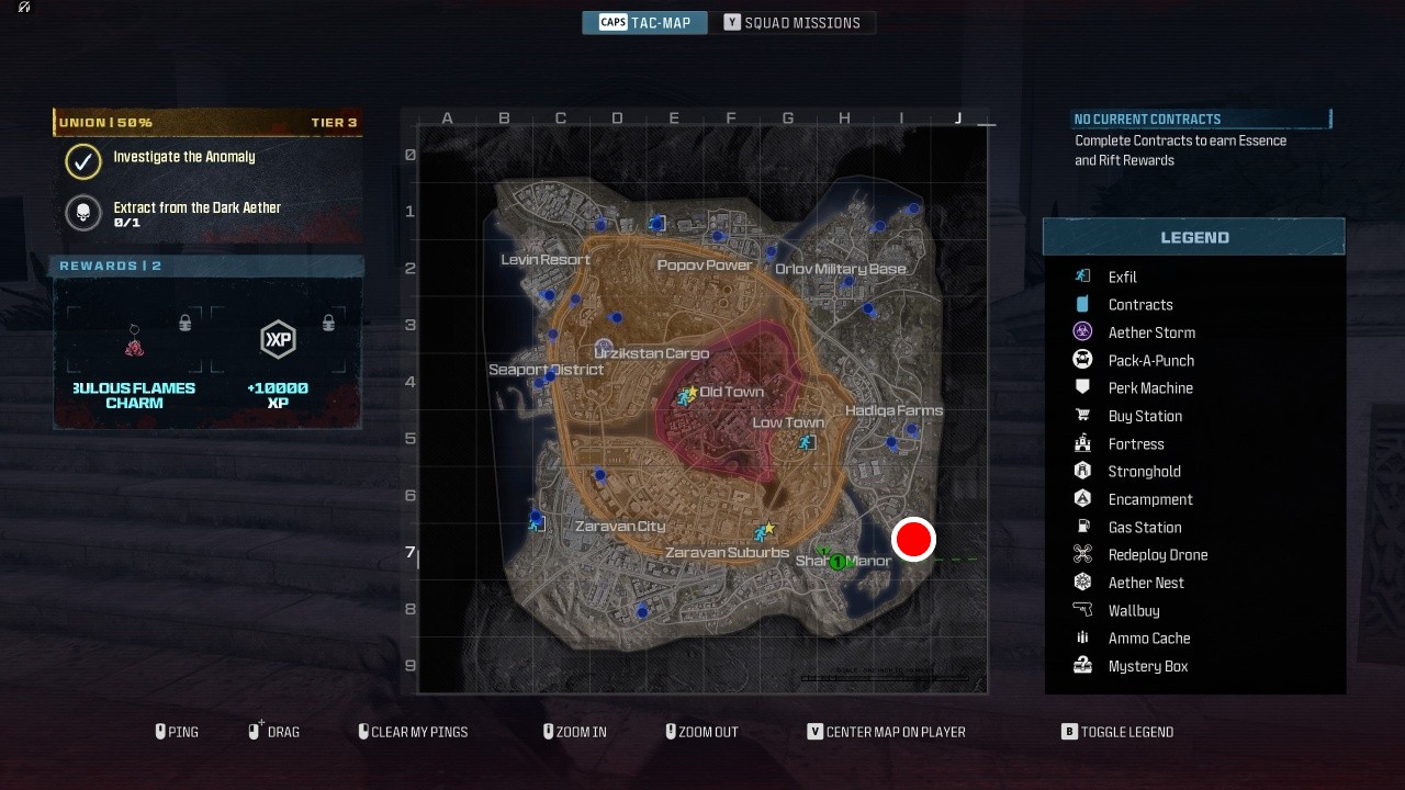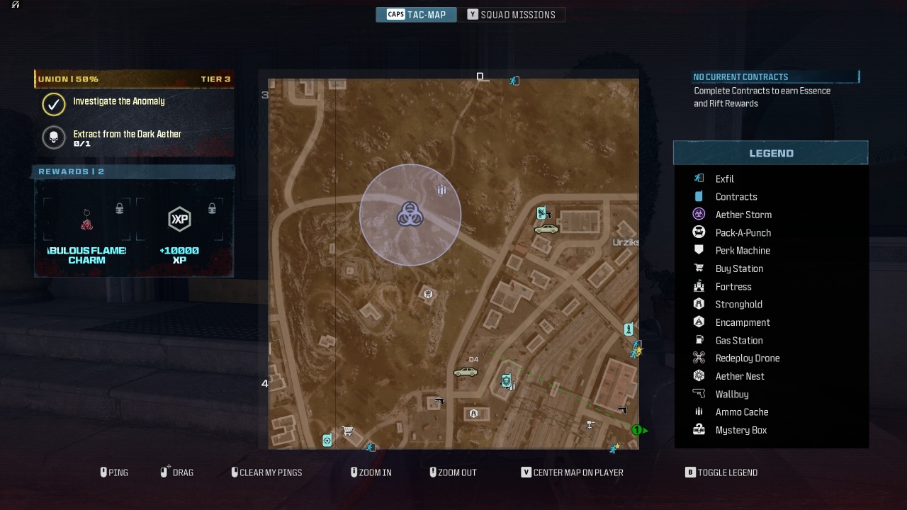 Normally, this purple triangle easter egg would give you 2000 Essence, a Flawless Aetherium Crystal, and a Legendary Aether Tool. If you have one of the relic items with you, however, you’ll be prompted to “perform the summoning” in the center of the ring. This will spawn a lot of Zombies plus a super strong boss Zombie after the initial horde. Defeating the boss Zombie will spawn a special reward rift with the upgraded golden versions of each item.