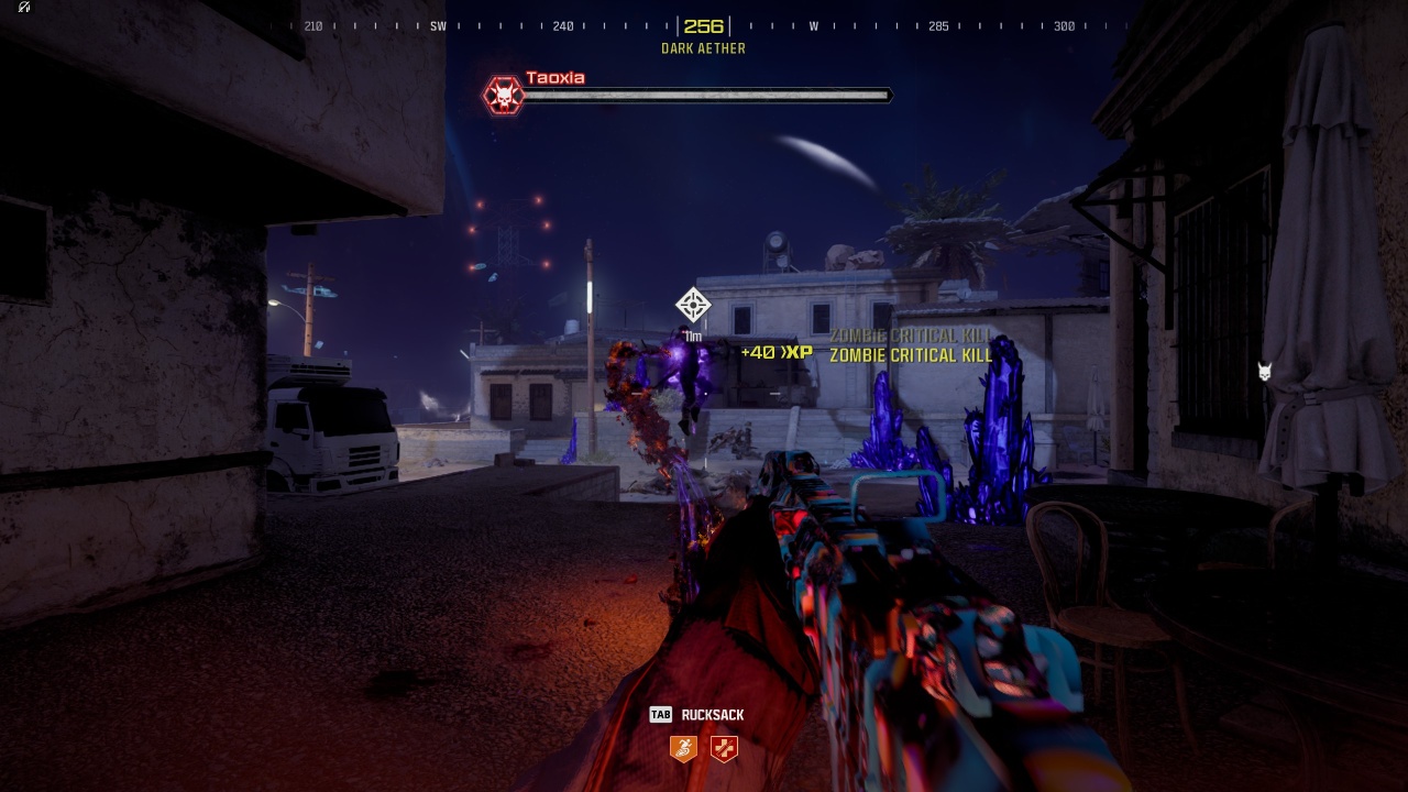 There are three purple triangles hidden throughout Old Town that point to runes that you can shoot. If you shoot all three runes, lines will appear on the nearby buildings. Finding a vantage point that makes the lines look like a completed triangle will spawn a purple ring that requires you to kill Zombies.