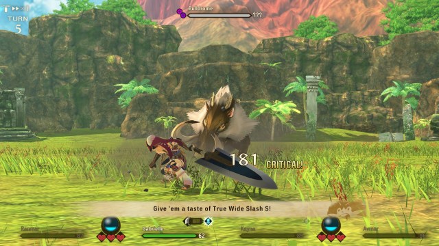 Head-to-head attacks occur when two characters attack each other simultaneously. It’ll be clearly denoted when two AI-controlled characters are about to enter a head-to-head with one another. When a normal attack is used against an enemy outside of a head-to-head, it plays out much like any other turn-based affair. The character strikes them. The head-to-head attacks are where the attack types matter most. Whenever two characters enter into one, they both get damaged. If the same attack type is used, it ends up in a draw. If not, the character with the weakness takes more damage. How much damage will, of course, depend on attack and defense as well.