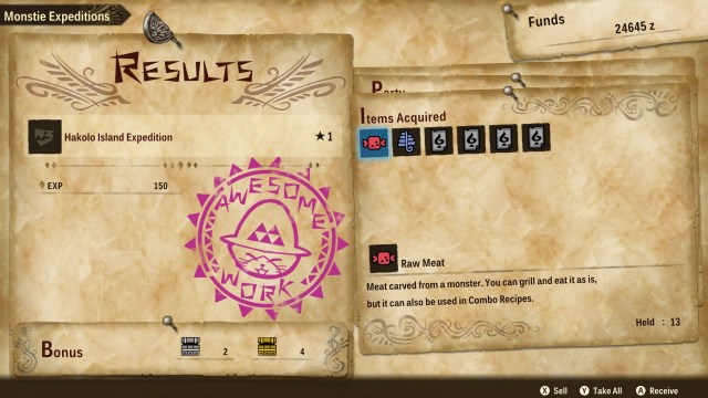 Mind you, the duration/timer will only run as long as you’re in-game. Closing the game and coming back later won’t work. In any case, you should be notified once a Monstie Expedition is finished.