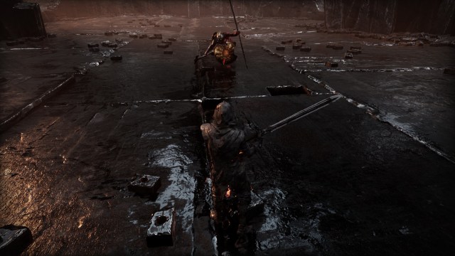 This boss’ attacks include a multi-hit combo that can be easily avoided or negated via hardening. I find that it’s easy to take swipes at him once he’s done with his combo. Likewise, if you can land four consecutive hits, you can stun him for a few seconds.
