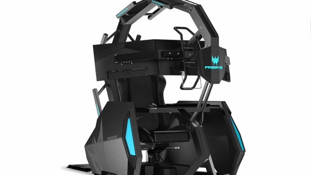 Furthermore, with its adjustable RGB lighting, black metal ‘shell’ exterior, and zero-gravity recline, the chair ensures gamers feel comfortable during long gaming sessions. Coupled with three Predator displays for an impressive triple monitor setup, a mechanical keyboard tray, and impact haptic vibrations (all powered by a powerful gaming rig) this product is geared towards providing users with one-click panoramic view transformations.