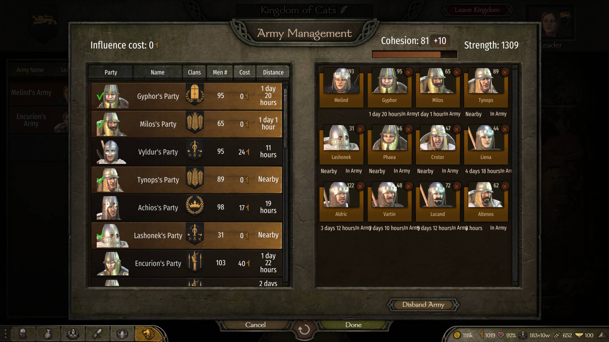 Vassals with low influence and no settlements won’t be able to contribute much in your war effort. They can’t create armies and they can’t earn more cash. Of course, we’ll want to give them a helping hand.