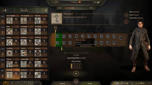 - Intelligence – Steward (100): Bannerlord – +2 party size for each fief that you own