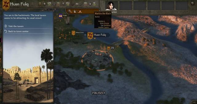 When playing the campaign proper, however, you’ll experience Mount & Blade II: Bannerlord’s massive sandbox world. Calradia and its characters move with or without you, and there will be times when some companions might not be around unless you keep looking for them. Their most common watering hole, though, is a tavern. If a settlement has a massive nameplate when fully zoomed-out and it looks like a castle when slightly zoomed-in, then there’s bound to be a tavern in there: