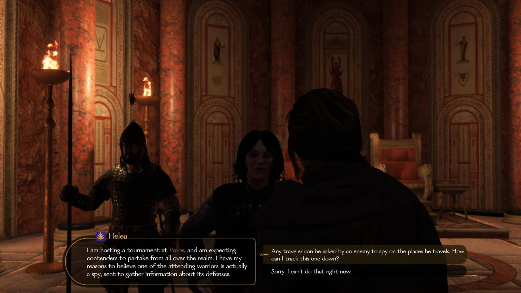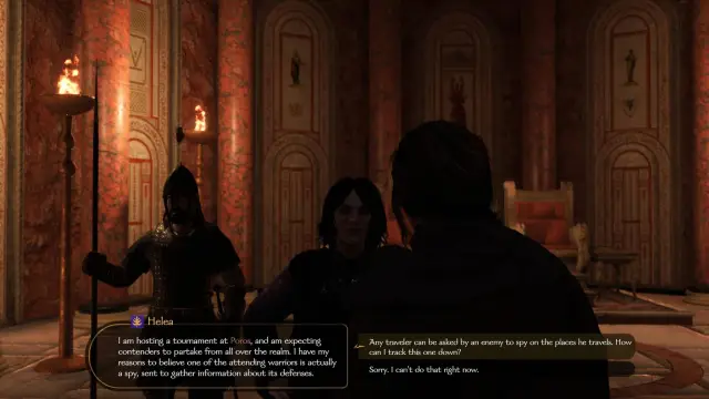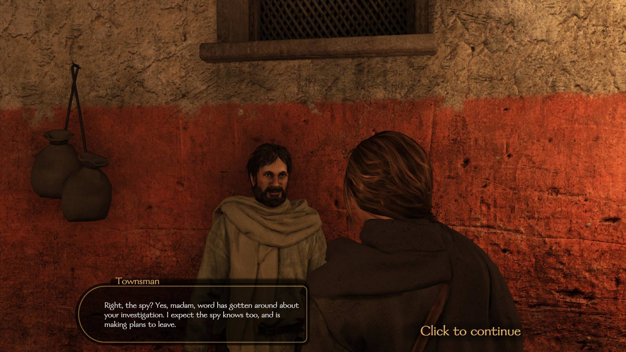 The gist is that a spy is attempting to subvert a ruler’s hold on their lands. That spy happens to be a tournament contestant. Don’t make the same mistake I did — I entered and won a tournament thinking that would lead me to the spy. It didn’t, but I did get some renown and loot.