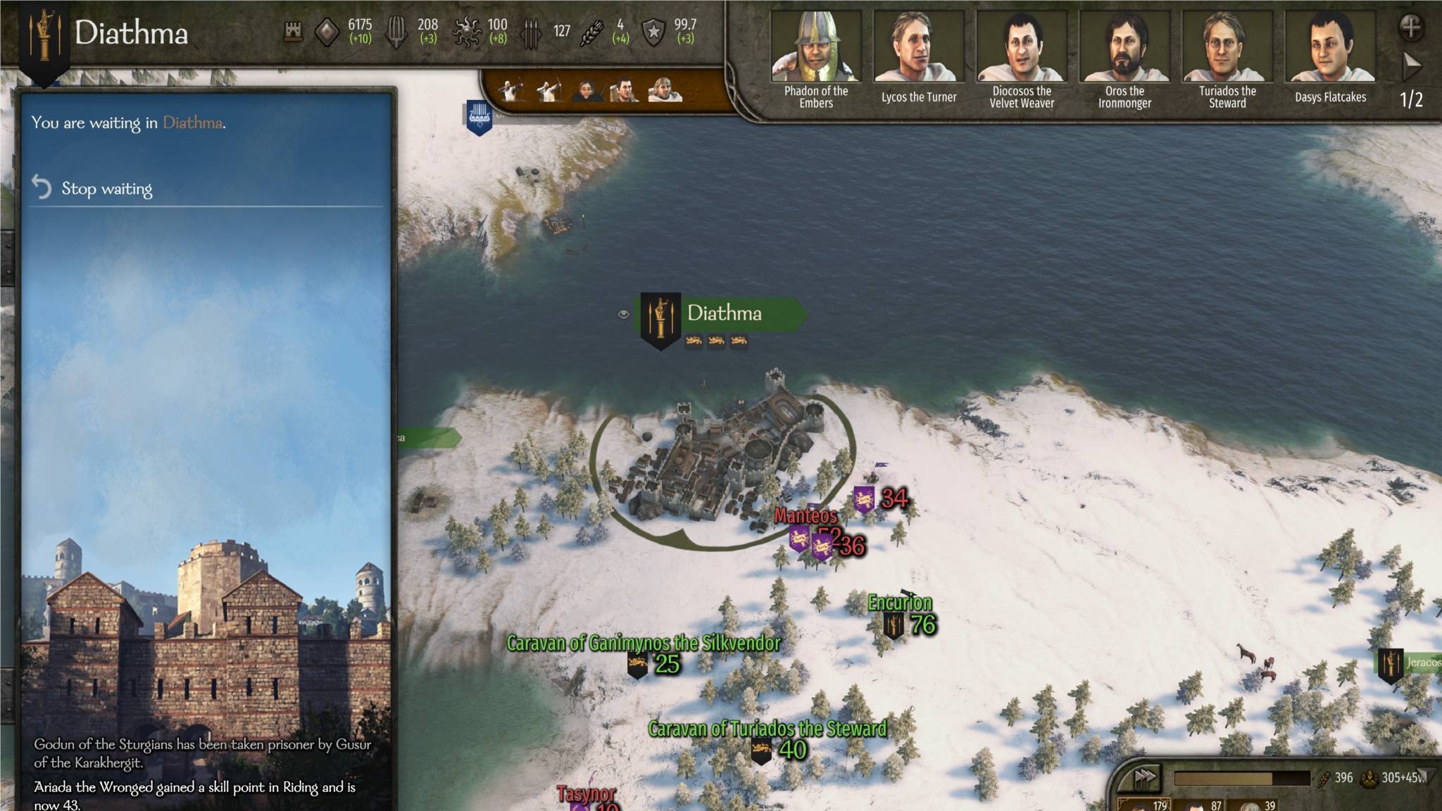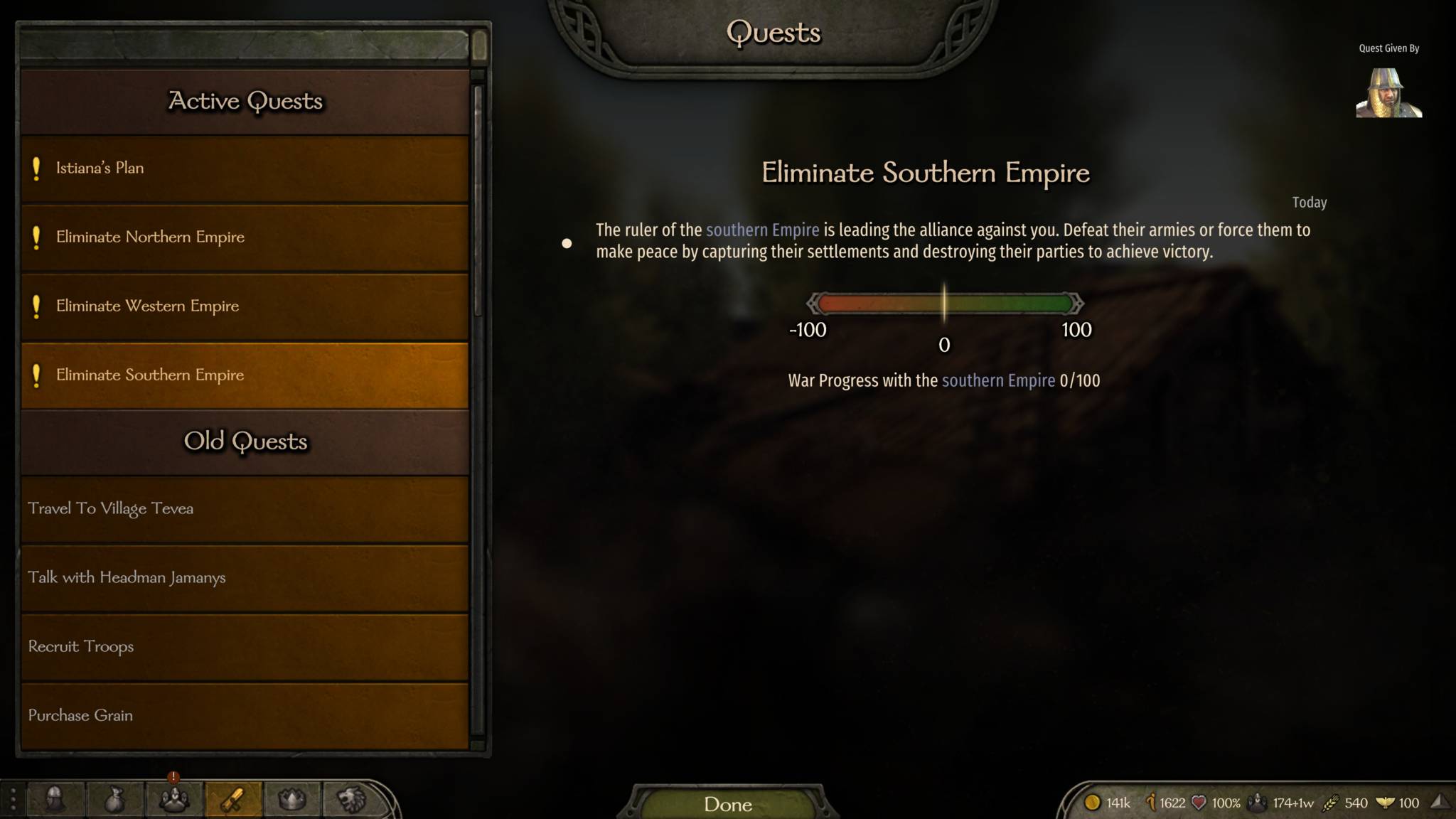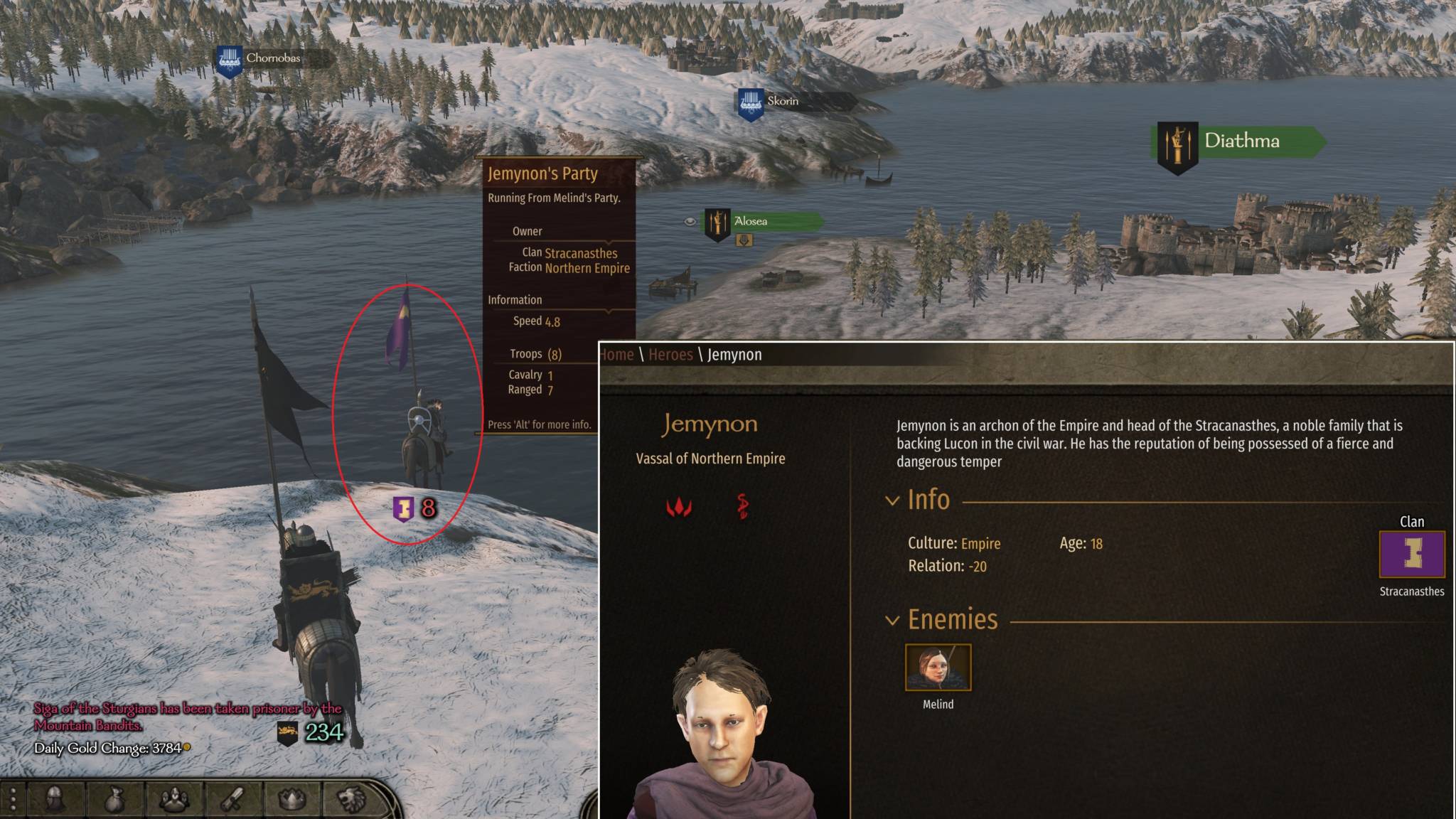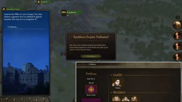 Bug: One reason why I couldn’t get the Northern Empire to capitulate despite imprisoning Lucon and his lords was because of a minor character that joined his faction. This character’s army remains stationary on a part of the map I couldn’t reach, locking the progress bar at 98%.