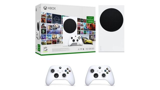 - Xbox Series S with two white wireless controllers and three months of Game Pass Ultimate – $289.99 ($80 off) on Walmart